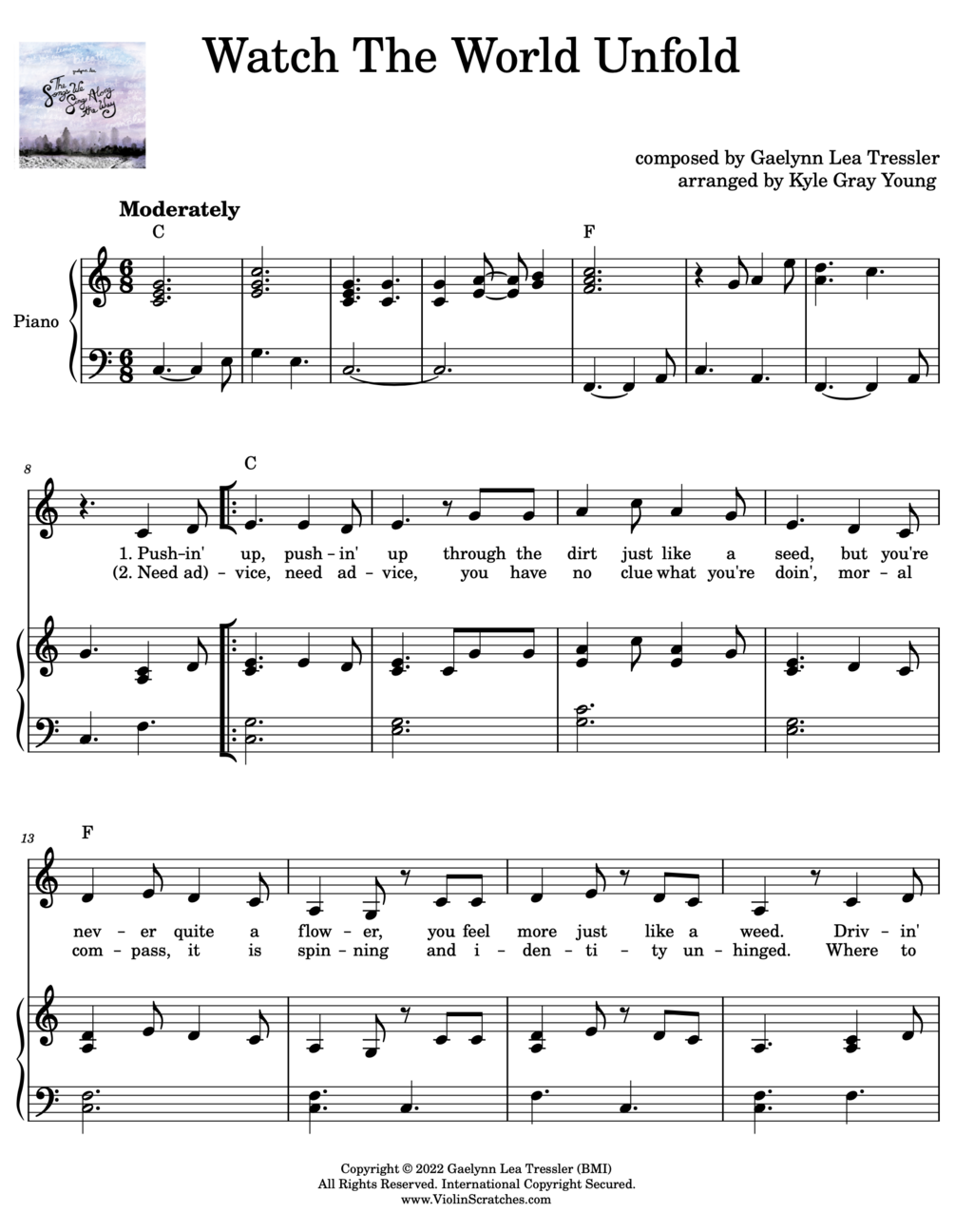 Gaelynn Lea - Watch The World Unfold (piano/vocal sheet music)