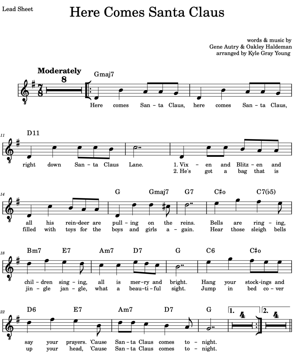 Here Comes Santa Claus (in 7/8 time!) (piano/vocal/guitar sheet music)