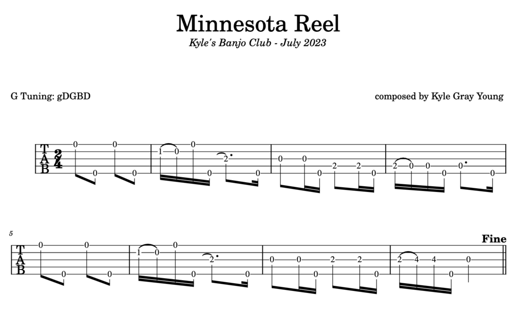 Welcome to Kyle's Banjo Club! On the first of every month, I will email you ten tunes in tablature along with a brief introduction for the month's selections. Most of my banjo tabs are for 5-string banjo in G, C, no bass, G minor, or sawmill tuning. I'll be sure to include pieces in a variety of skill levels each month. Every tune is presented in clear, easy-to-read tablature. All of the current month's titles are listed below.