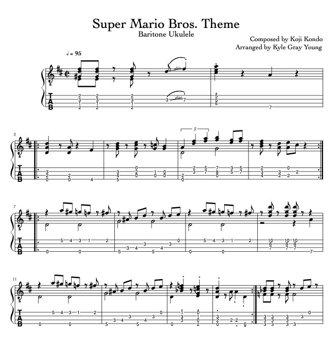 Super Mario Bros. Theme (baritone ukulele tabs/sheet music)