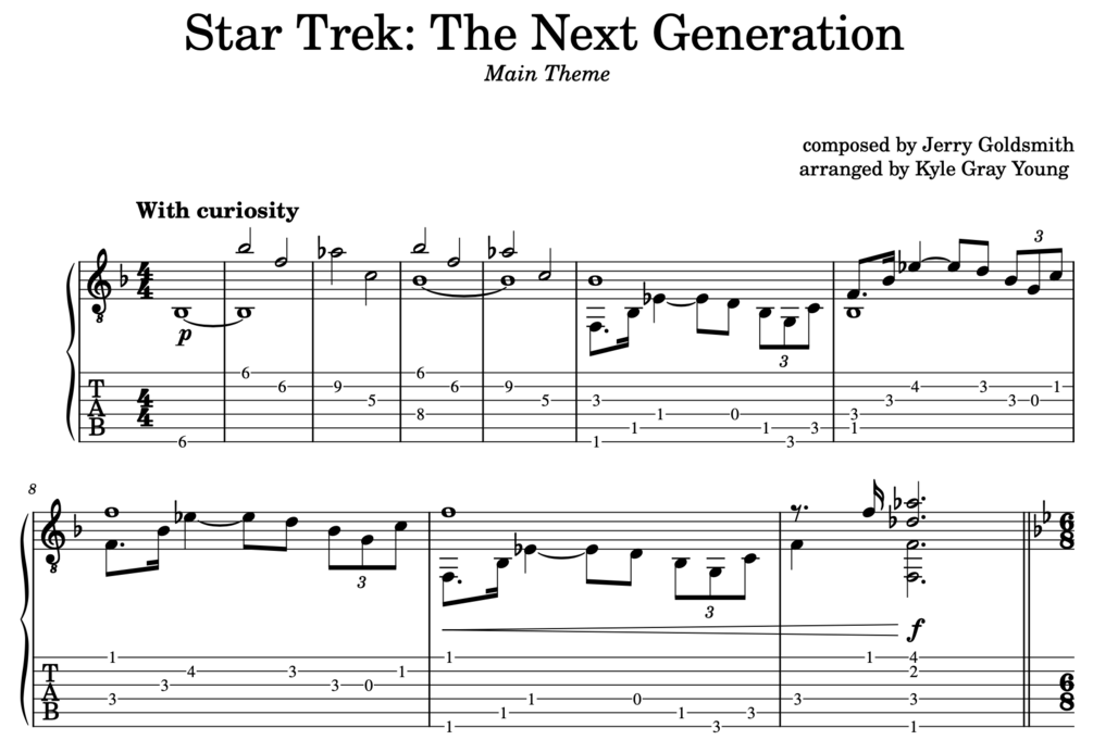 Star Trek: The Next Generation Theme (fingerpicking guitar tabs/sheet music)