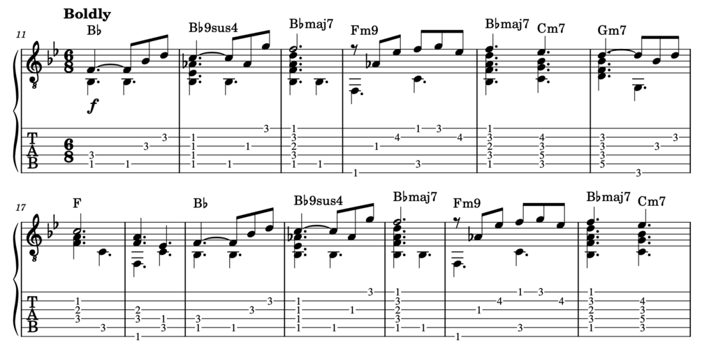 Here's a brand new arrangement of the theme from Star Trek: The Motion Picture as well as Star Trek: The Next Generation. This is for solo fingerpicking guitar with chord names for accompaniment. Difficulty level is later intermediate and up. Let notes and chords ring throughout when you're able to.