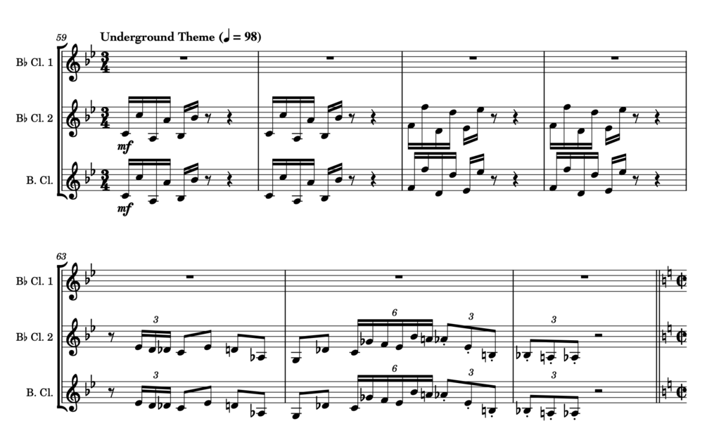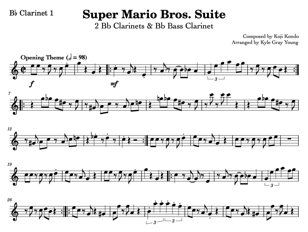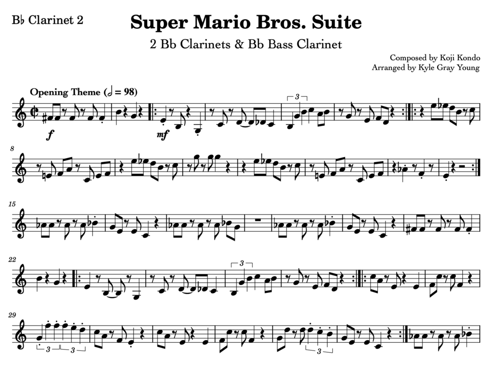 Super Mario Bros. Suite (2 Bb clarinets, 1 Bb bass clarinet, sheet music)