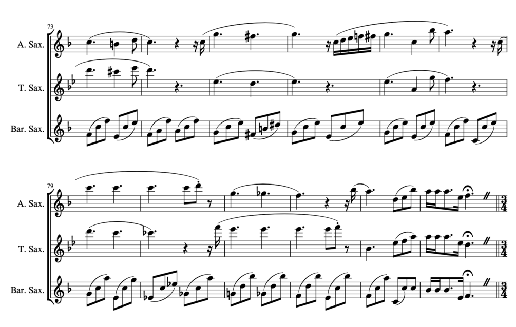 Originally arranged for the Twin Cities Trio in April 2013. Revised September 2020 for three saxophones. Score is seven pages, each part is two pages, everything is included in one PDF.