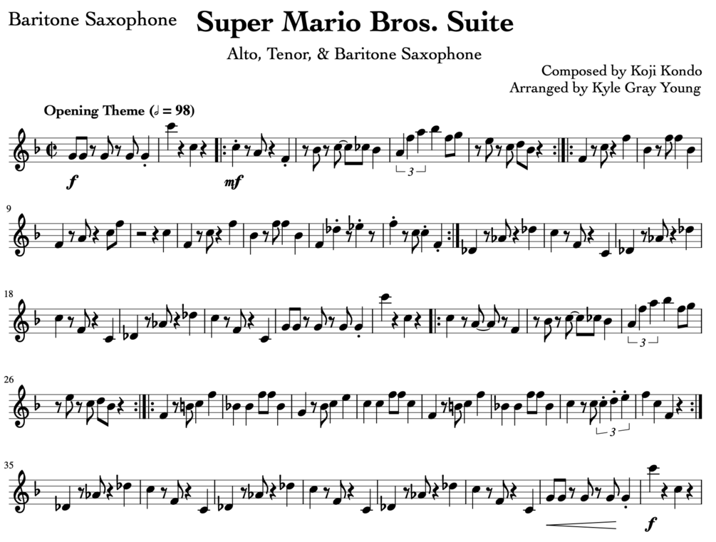 Super Mario Bros. Suite (alto, tenor, & baritone saxophone sheet music)